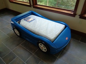 Bed for establishing on the ground the Little Tikes blue sports car twin bed, $125; twin mattress/box spring, $50 obo. 606-7822 Toddler bed, white wood, underdrawer, rails, mattress, girly sheets, quilt, valance, $125. 617-1822 ... Retrieve Doc